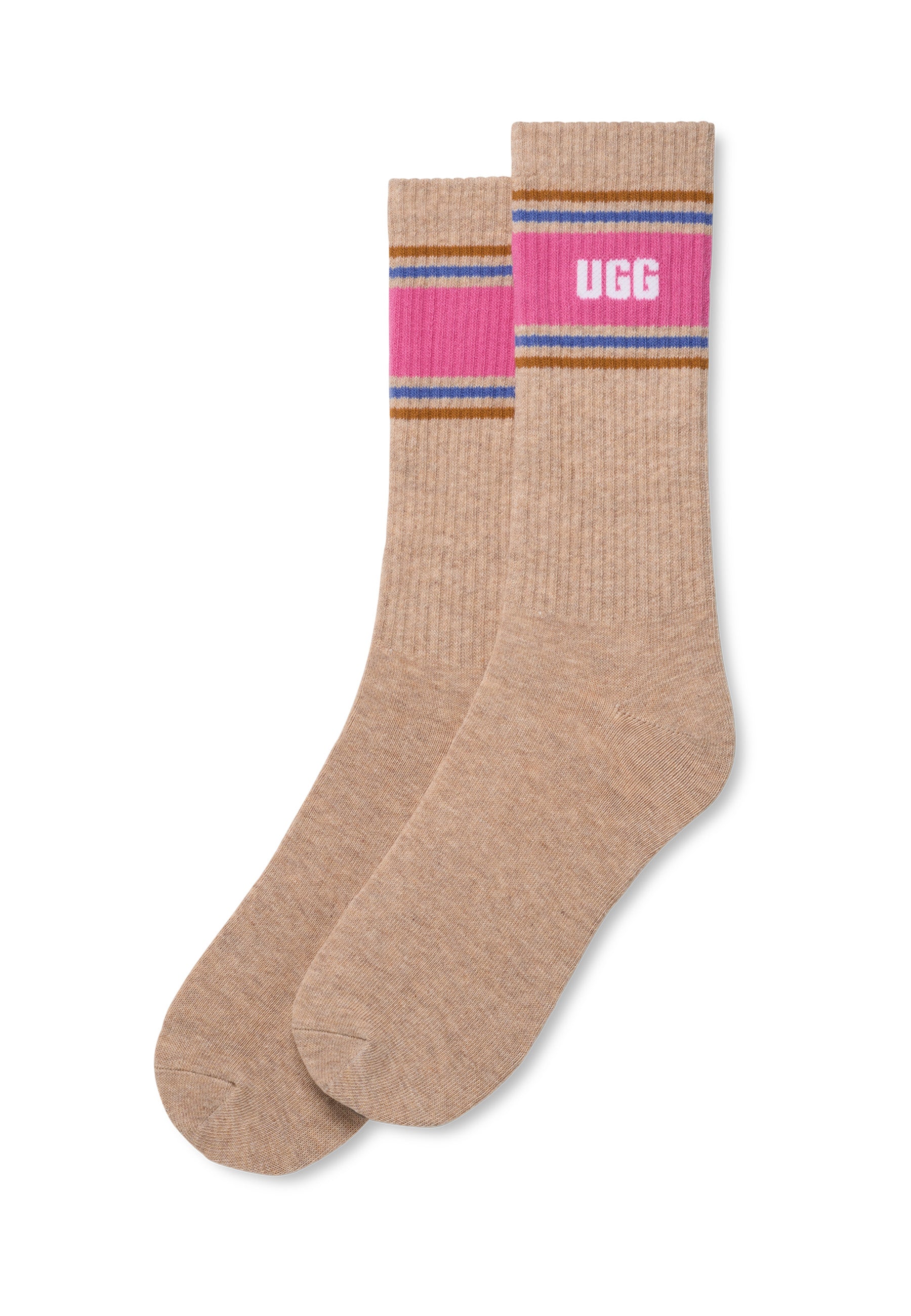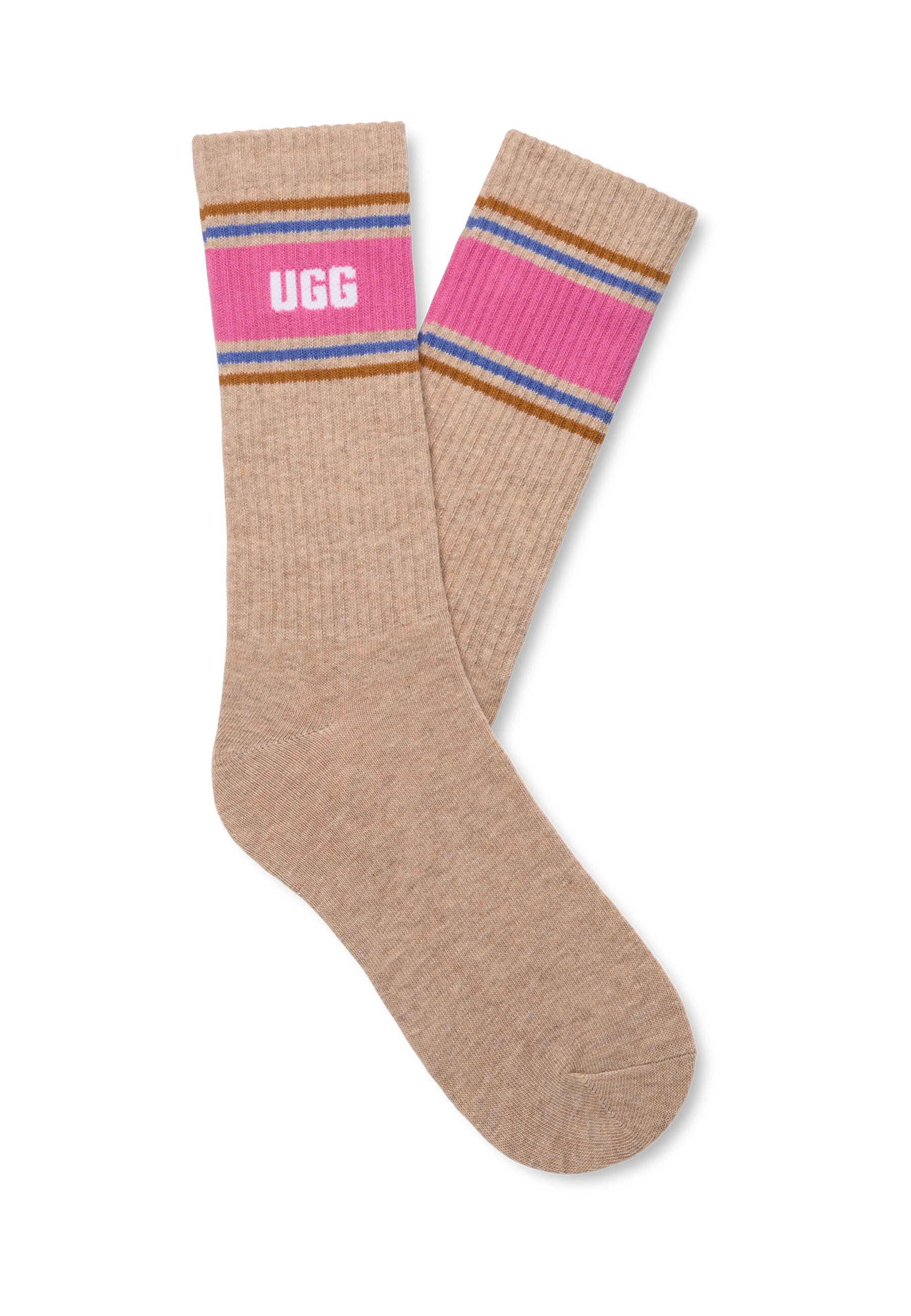 Das UGG Semester hat begonnen. Die wadenhohen Jedlyn Varsity Socken mit klassischem Sportsocken-Vibe haben einen breiten, farbigen Streifen, der zeigt, wie sehr du UGG liebst. Das Paar wird mit nachhaltiger Baumwolle gefertigt und erhält von dir sicher eine Eins in Sachen Stil.