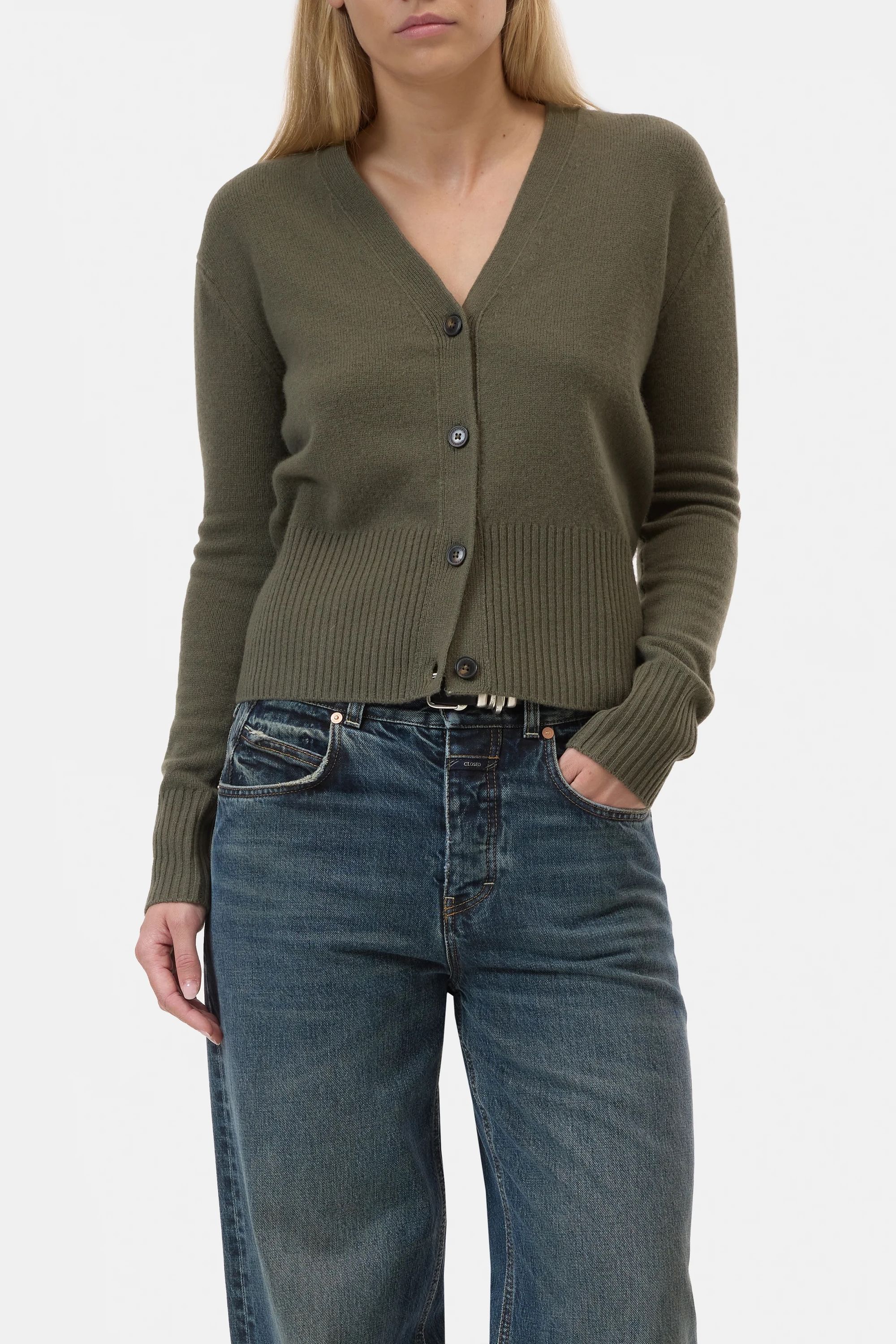 Der V-Ausschnitt-Cardigan von CLOSED hat eine reguläre Passform und besteht aus extra feiner, verantwortungsvoll gewonnener Merinowolle mit dezentem Overwash.