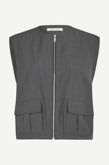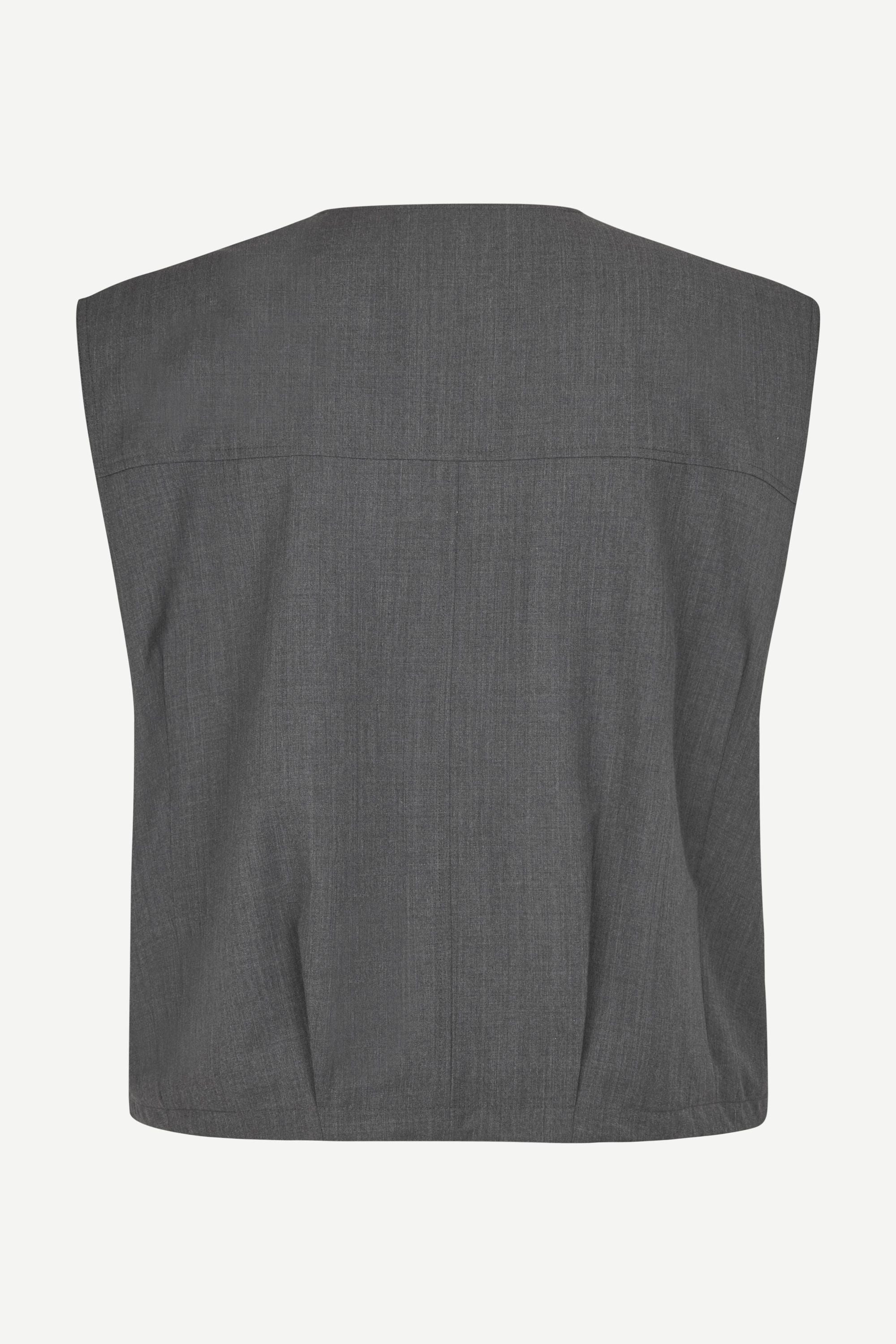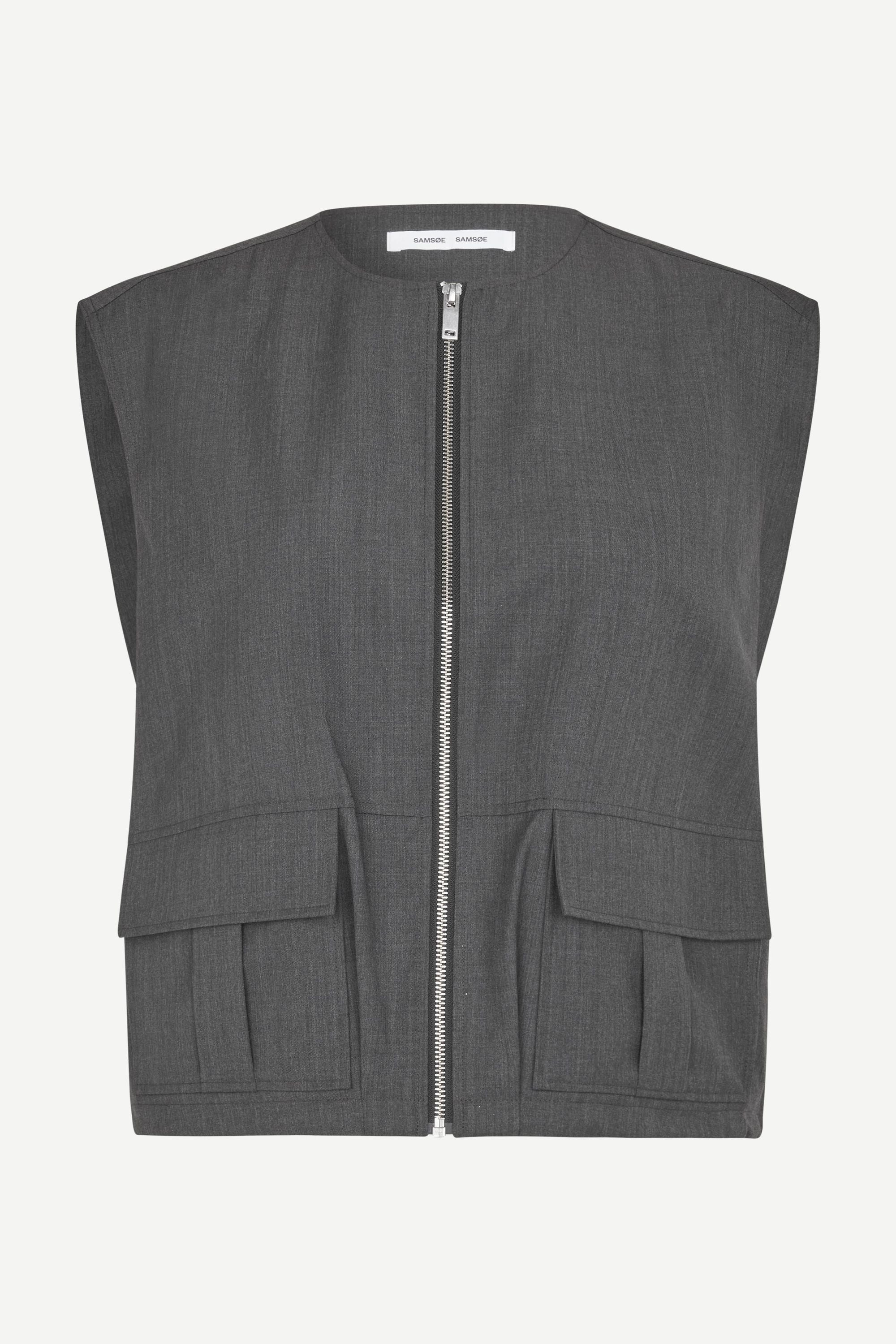 Weste mit Oversize-Passform. Reißverschluss auf der Vorderseite. Aufgesetzte Taschen mit Patten auf der Vorderseite. Kordelzug am unteren Saum. Hauptfutter aus [wünschenswertem Material/Gemisch]. Vollständig gefüttert. Hauptmaterial gefertigt aus einem Woll-Gemisch.