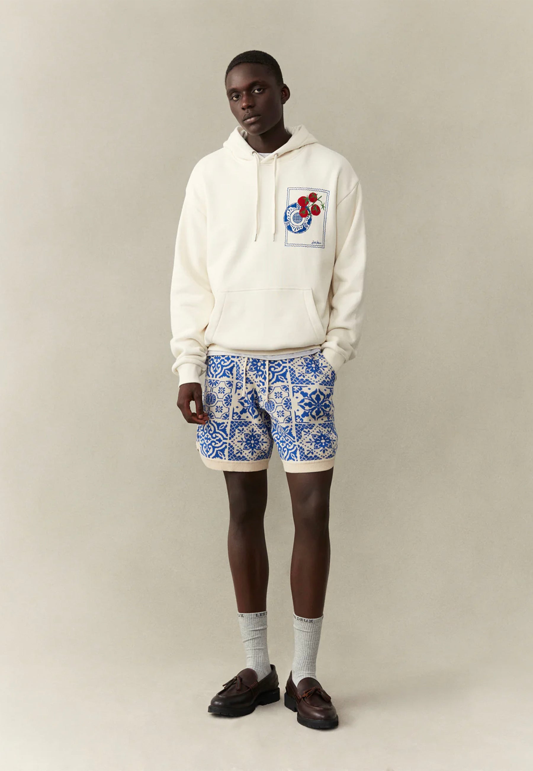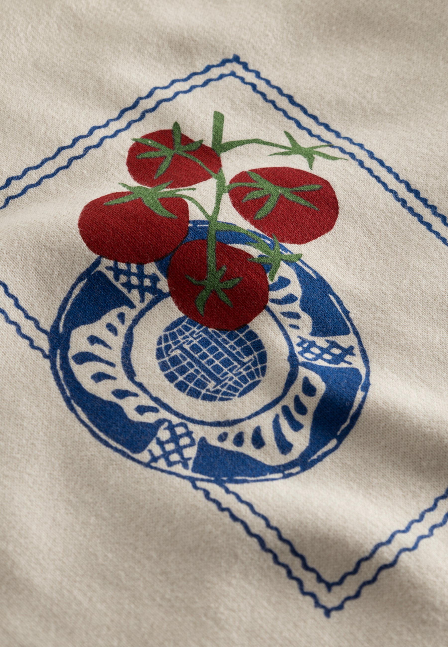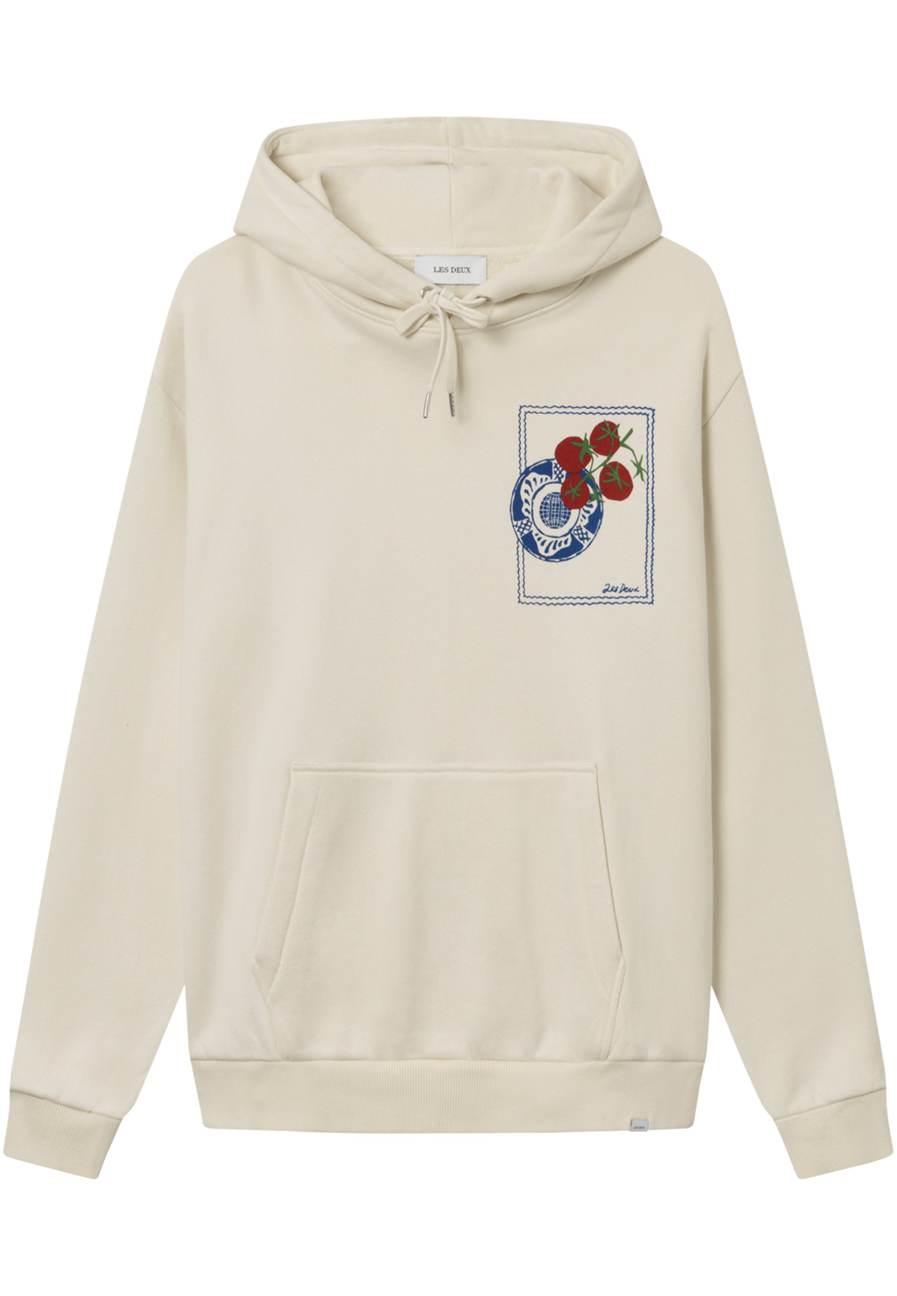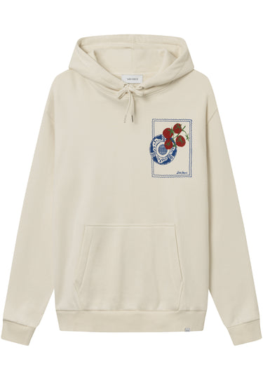 Schwerer Baumwoll-Kapuzenpulli mit Siebdruckmotiv auf der Brust.